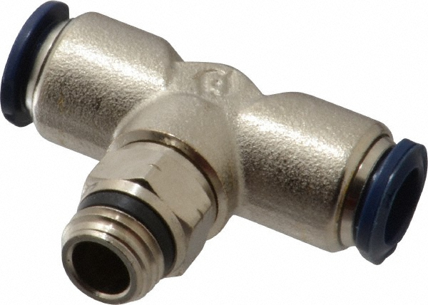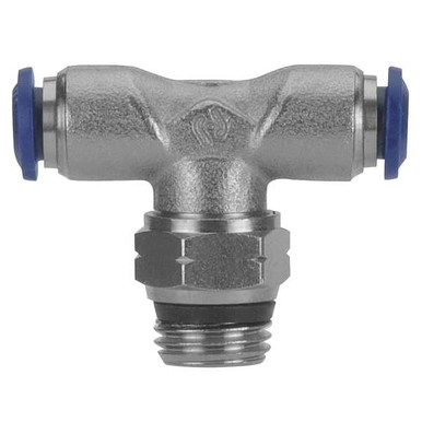 AIGNEP Swivel Branch Tee 87210-06-04, 3/8 Tube x 1/4 Swift-Fit Universal Thread Simplify the world of push-to-connect fittings with Alpha Swift-Fit, one fitting that works with either tapered or straight threads. If you have a pipe thread, you can count on Swift-Fit to seal without leaking. Port size can easily be identified but what about that thread pitch This listing is for Pkg of 10. Product Details Seal Type Buna Sleeve Nickel Plated Brass Media Compressed Air, Inert Gases Thrust Ring Nickel Plated Brass or Composite Pressure Rating Vacuum-250 PSI Lip Seal NBR 70 Gripper Collet Material Stainless Steel Tube Material Compatibility Nylon, Polyethylene, Polyurethane, Copper Type Push-To-Connect Fittings Package Quantity 5 Temperature Rating 0-160° F Style Swift-Fit Safety Ring Material Technopolymer Body Material Nickel Plated Brass Thread Seal NBR 70 Weights & Dimensions Thread Universal in Nominal Flow Diameter 3/8 in Length 2 in Weight 0.145 lbs