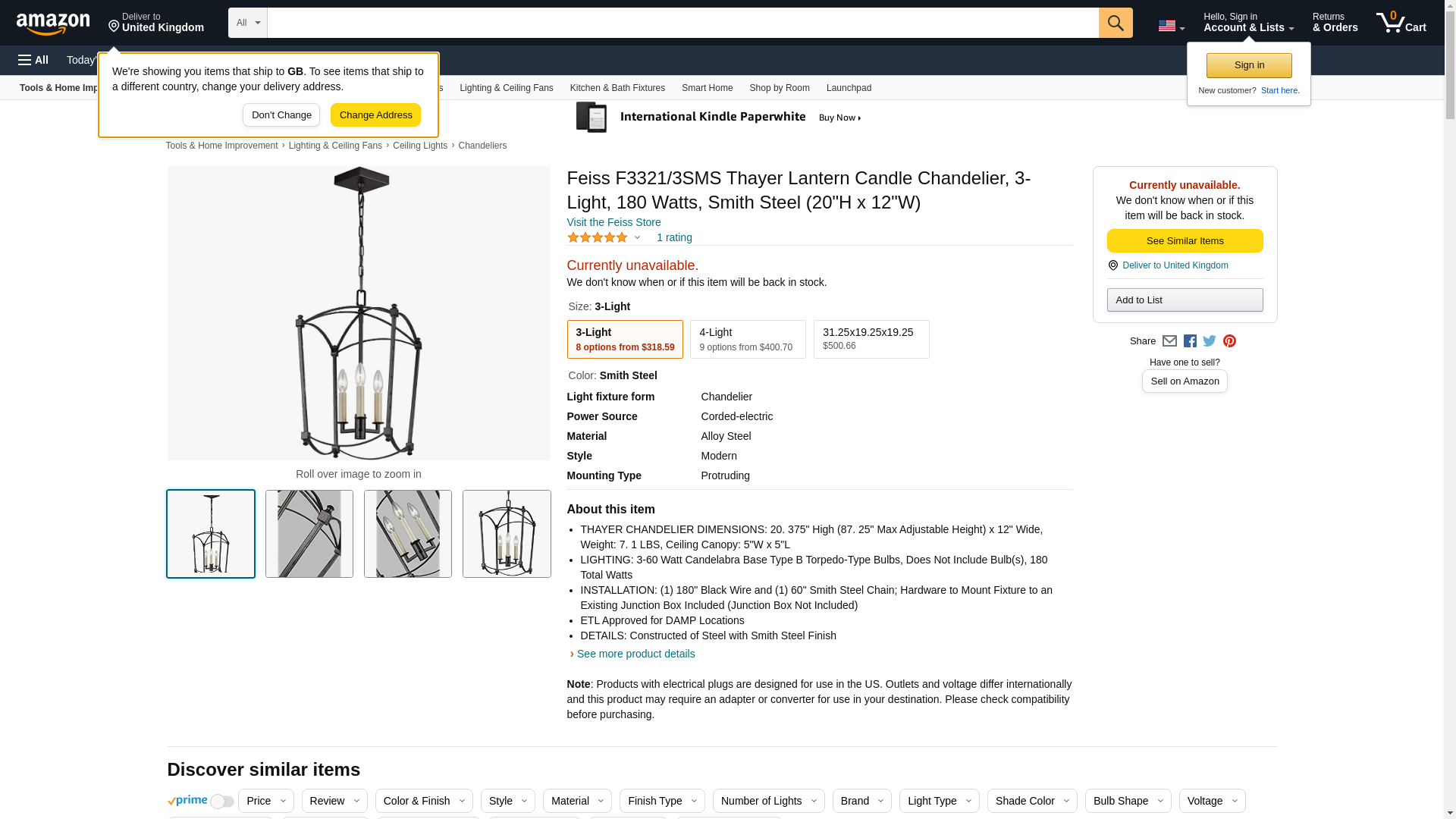 | gordonelectricsupply.com | F3321/3SMS | 1 | Feiss Orders Over $300 Usually Ship Next Day, Otherwise 7-10 Days | 1 | 1 @ $392.84 |