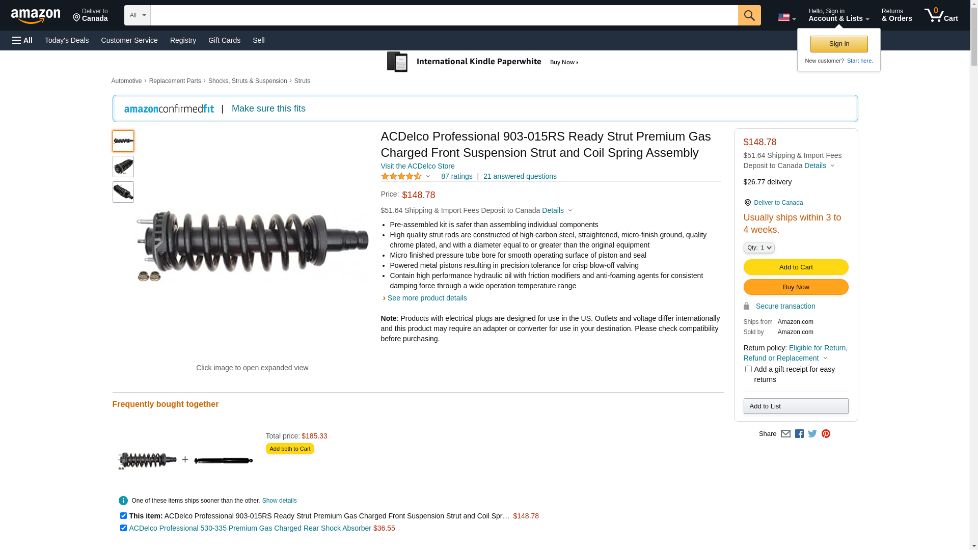 ACDelco Professional 903-015RS Ready Strut Premium Gas Charged Front Suspension Strut and Coil Spring Assembly