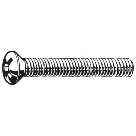 'Machine Screw, Head Type Oval, A2 Stainless Steel (Comparable to 18-8 Stainless Steel), Length 30mm, Drive Type Phillips, Finish Plain, Thread Size M6 x 1mm, Driver Size #3, Head Dia. 11.0mm, Head Height 3.00mm, Head Angle (Deg.) 90, Tensile Strength (PSI) 72, 500, Meets/Exceeds DIN 966A, Package Quantity 50'