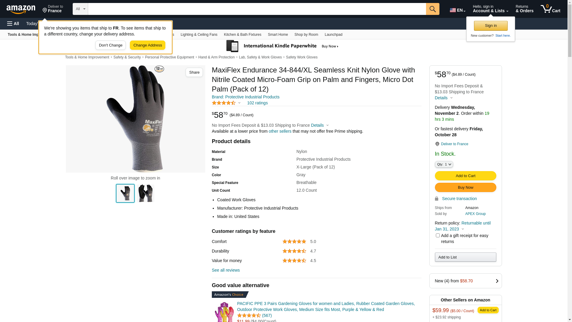 | MAXIFLEX-34-844/XL | 1 | -2 | 1 | 1 @ $49.99 | |