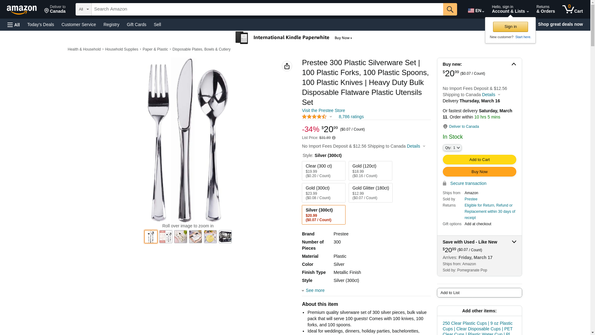 Set the table with flair using Silver Plastic Flatware Set. Its sleek handles with metallic finish will convince your diners it is the real deal. Including forks, knives, and spoons, you'll have enough silverware to serve plenty of guests at your wedding, rehearsal dinner, anniversary celebration or corporate event. And when the party is over, disposable cutlery makes cleanup a cinch and worry free about expensive silverware being accidentally thrown away. Prestee's cutlery, designed for style and comfort.