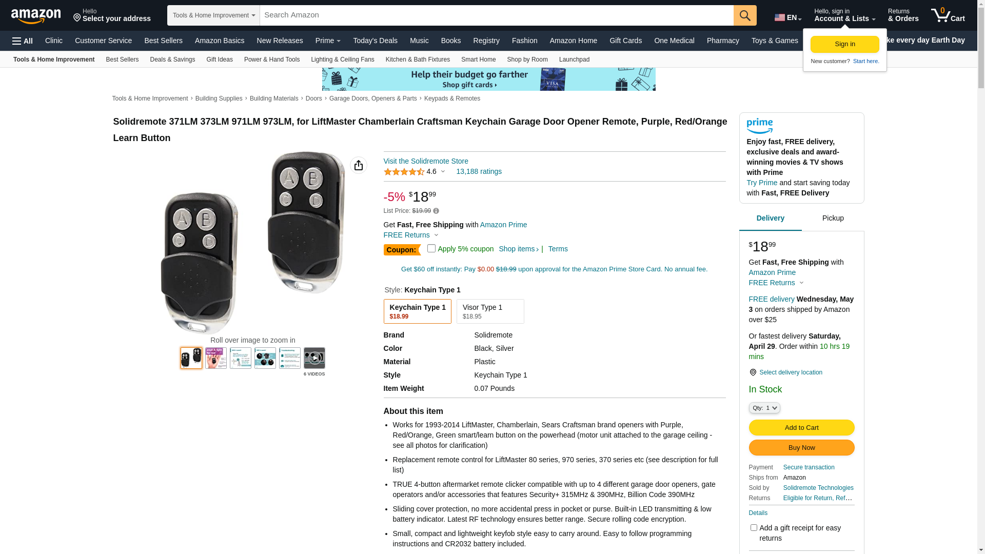 Solidremote 371LM 373LM 971LM 973LM, for LiftMaster Chamberlain Craftsman Keychain Garage Door Opener Remote, Purple, Red/Orange Learn Button