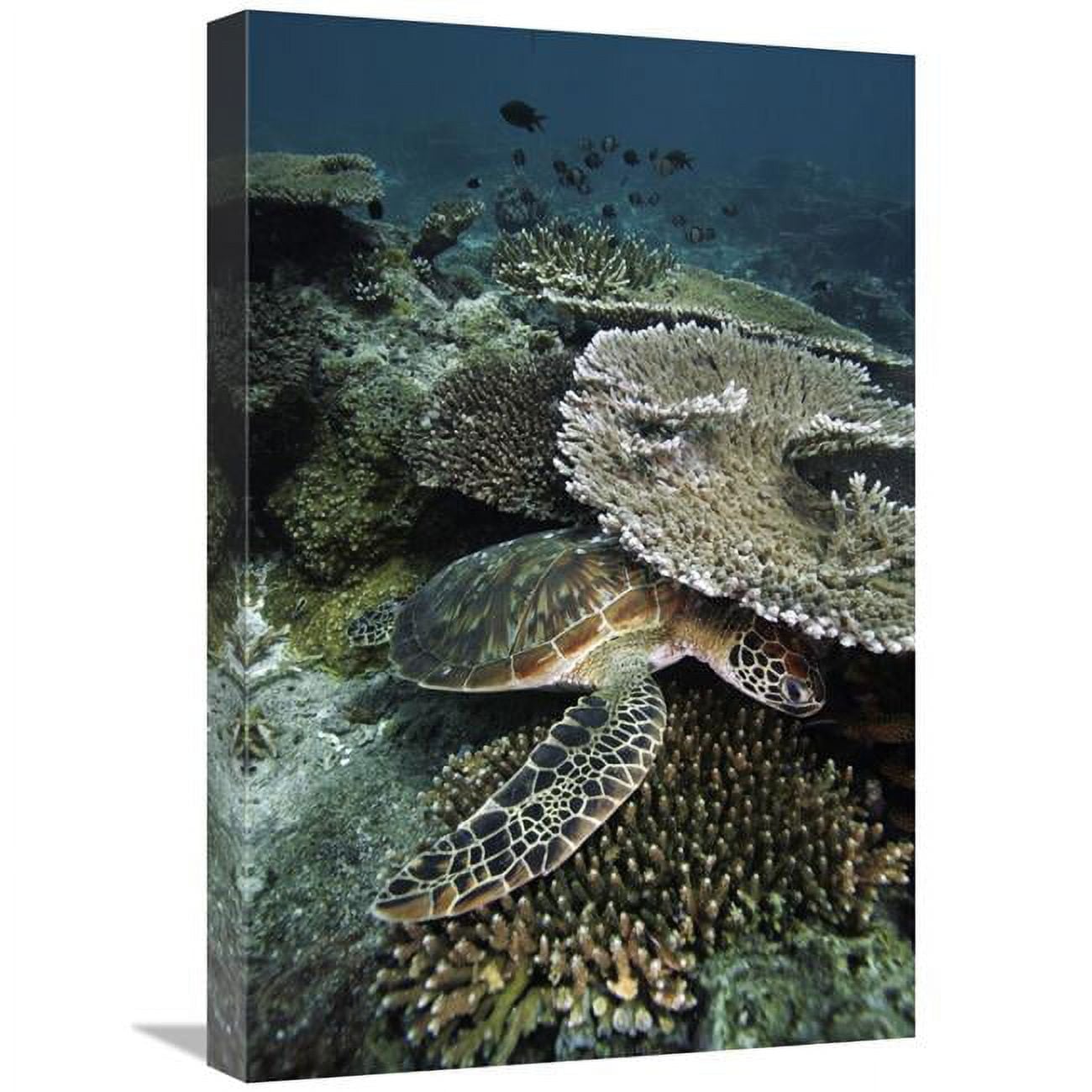 Global Gallery GCS-453563-1624-142 16 x 24 in. Green Sea Turtle on Coral Reef, Sipadan Island, Celebes Sea,