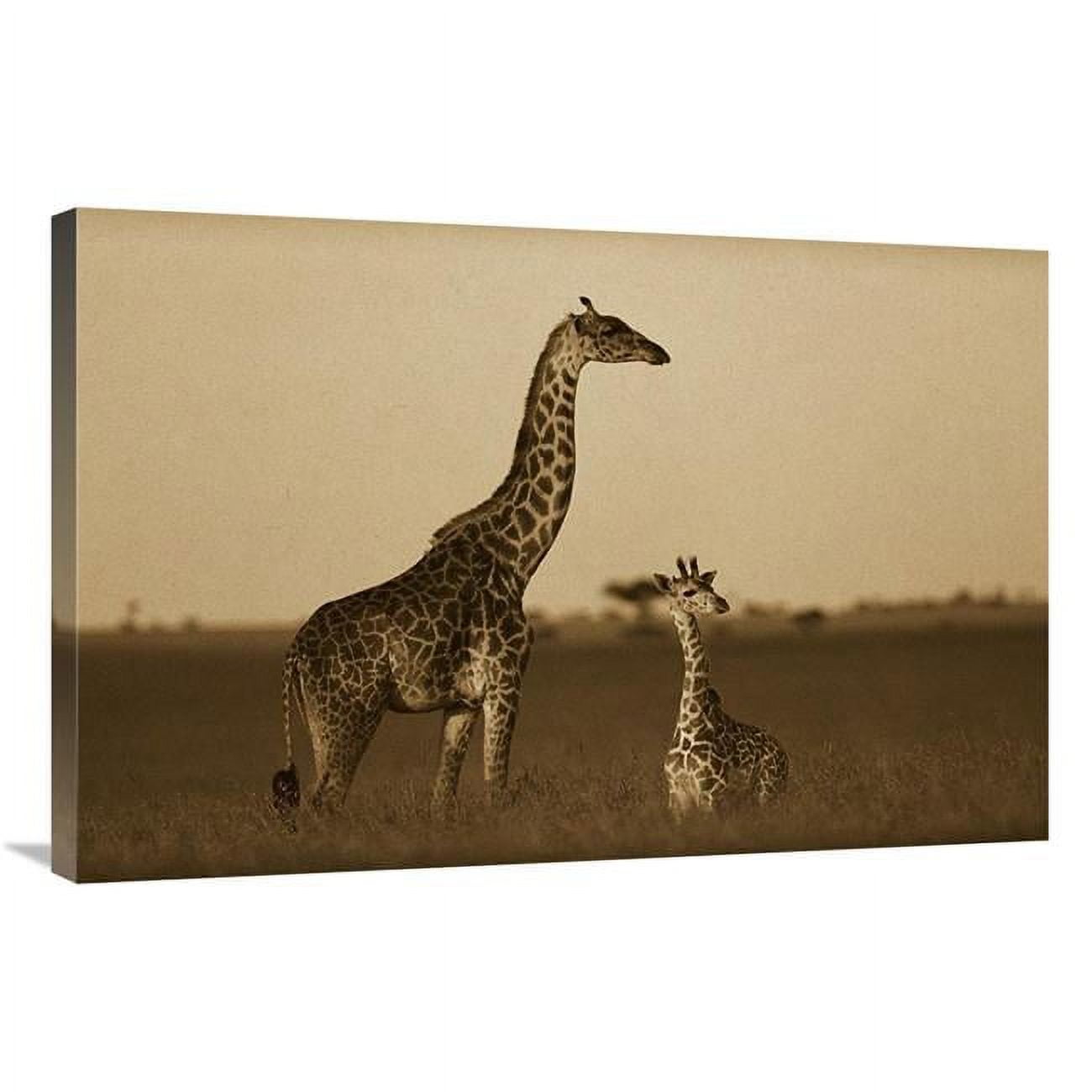 Global Gallery GCS-453688-2436-142 Tim Fitzharris Giraffe Adult and Foal On Savanna Kenya Sepia Gallery Wrap Giclee on Canvas Print Wall Art