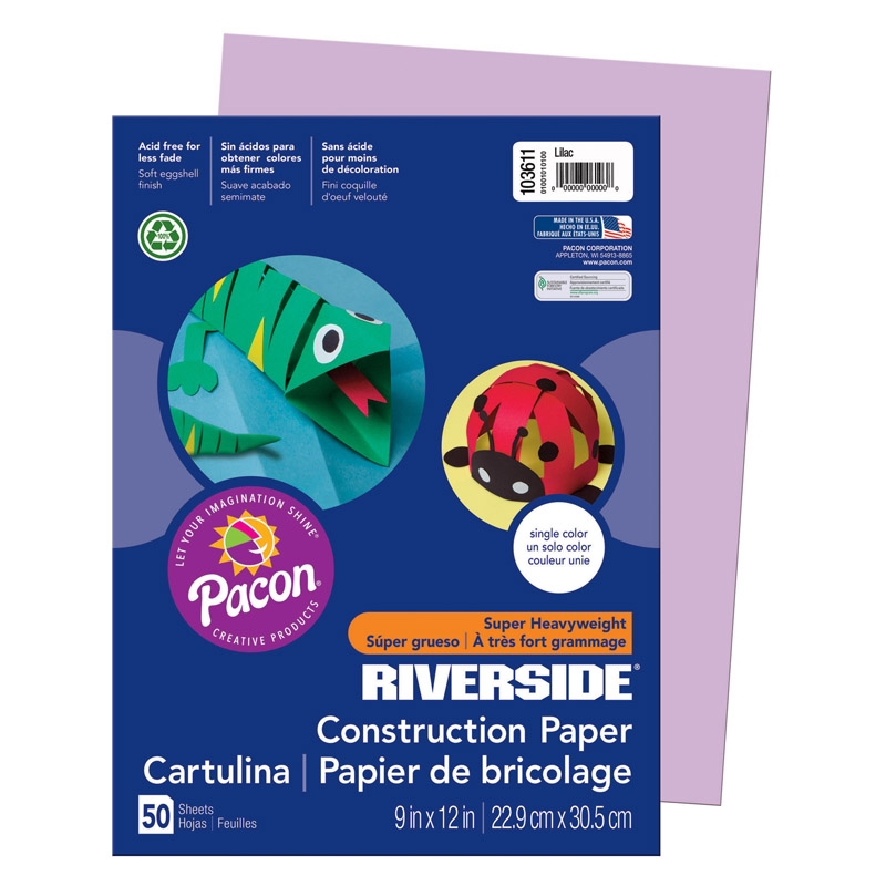 Pacon PAC103611-10 9 x 12 in. Riverside Lilac Construction Paper - 50 Sheets Per Pack - Pack of 10