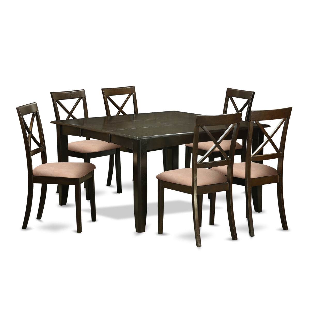 East West Furniture PFBO7-CAP-C 7 Piece Dining Set Consist of a Square Dining Room Table with Butterfly Leaf and 6 Linen Fabric Upholstered Kitchen Chairs, 54x54 Inch, Cappuccino