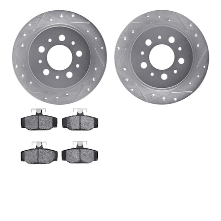Dynamic Friction Company Rear Brake Rotors-Drilled and Slotted-Silver with 5000 Advanced Brake Pads 7502-27013