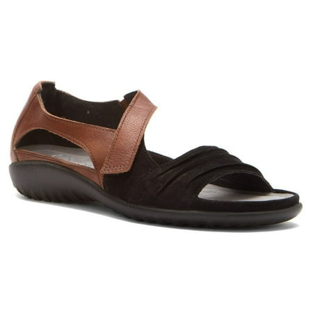 Naot Footwear Women's Papaki Black Velvet Nubuck/Cinnamon Leather Sandal 36 (US Women's 5) M