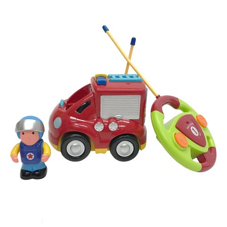 Your kids will love this R/C car with live action sounds and lights. The controls have two functions; foward and reverse left turn. The car has three button which triggers live action sounds and music that will make your kids smile. The headlights will blink with each press of the button. The driver figure is removable for individual play. Improve your child's hand and eye coordination as well as sound and color perception with this toy. Keep their imagination stimulated with this cute toy car.