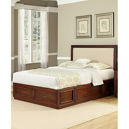 <br /> <b>Home Styles Duet Platform King Panel Bed with Oyster Microfiber Inset, Rustic Cherry:</b> <ul> <li>Mahogany solids and cherry veneers</li> <li>Neoteric 7-step cherry finish</li> <li>Modern oyster microfiber panel inset</li> <li>Padded headboard for comfort</li> <li>Mitered-cut framed drawer fronts</li> <li>2 fully extending pull-out drawers</li> <li>Easy-glide ball-bearing metal suspension</li> <li>Raised mahogany picture frame panels</li> <li>Antiqued brass hardware</li> <li>Mattress and box spring sold separately</li> <li>Arrives in 1 box</li> <li>Assembly required</li> <li>30-day parts warranty</li> <li>Model# 5546-600D</li> <li>Box spring not required</li> <li>King size bed (assembled): 89"L x 79"W x 56"H</li> <li><b>Mattresses sold separately</b>. See our assortment of <b><a href="http://www.walmart.com/cp/539386" target="_blank"> mattresses</a></b>.</li> </ul>