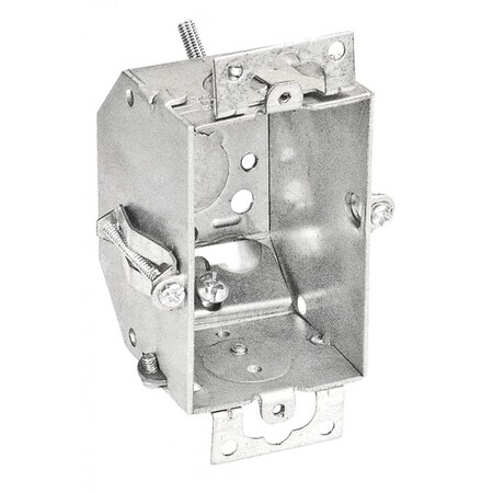 2 Pcs, 2-1/4 In. Deep Beveled Corner Switch Box w/Nonmetallic Shreaded Cable Clamps & Old Work Clips & Ears, Zinc Plated Steel, (1) 1/2 In. Bottom Knockout