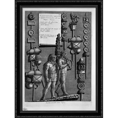 Signifer Corniculario with various signs and Roman (from the Trajan column) 28x36 Large Black Ornate Wood Framed Canvas Art by Giovanni Battista Piranesi