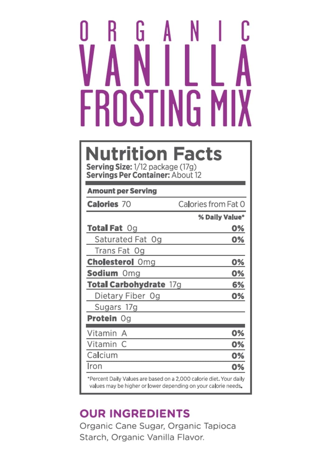As an Amazon Associate, we earn from qualifying purchases. Foodstirs Organic Vanilla Frosting Mix 7.2 Ounce (Pack of 3) Foodstirs . B075RBRSS4 Gallery Attributes Brand name, Manufacturer name, ManufacturerFoodstirs Extra Product NameFoodstirs Organic Vanilla Frosting Mix 7.2 Ounce (Pack of 3) dataSourceamazonScraper moq, multiple, tierMinQty11 qtyInStock0 SKUB075RBRSS4 snippetOur custom organic vanilla frosting takes the cake! Made from real ingredients and preservative free. You will not be able to stop yourself from licking the bowl. Makes about 1.5 cups of frosting and frosts about 12 cupcakes. Distributor offers SellerSKUMOQIn stockMultiplePrices AmazonB075RBRSS411