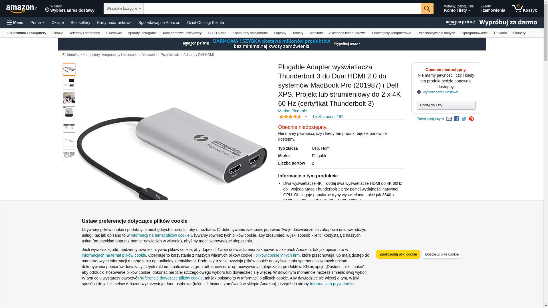 Plugable Thunderbolt 3 to Dual HDMI 2.0 Display Adapter for MacBook Pro Systems