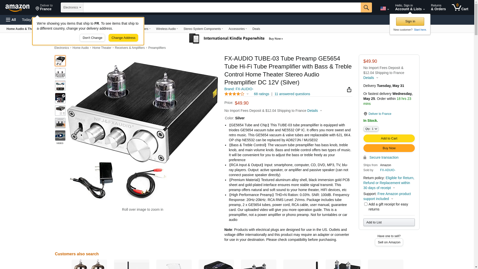Our brand FX AUDIO is dedicated to serve Hi-Fi audiophile who pursue high quality music. We keep innovative and persistent belief and have produced a series of audio products to improve sound quality and keep sweet soft and real sound. Welcome to order and enjoy retro music with us!<br><br> <b>Product Features:</b><br> -Bass and treble knob control and volume control<br> -GE5654 vacuum & valve tube and NE5532 chipset<br> -RCA input and output, compatible with RCA audio devices<br> -Aluminum alloy casing and metal oxidation drawing material<br> -Durable and long-lasting black heavy gold craft<br> -Newest inside chips with high performance<br> -Compact and portable, easy for carrying around<br><br> <b>Specification:</b><br> Tube: GE5654<br> Chipset: NE5532<br> THD+N Ration: 0.03%<br> SNR: 100dB<br> Frequency Response: 20Hz-20kHz<br> RCA RMS Level: 2Vrms<br> Interface Input: RCA<br> Interface Output: RCA<br> Power Supply DC: 12V 1A<br> Unit Weight: 0.45kg<br> Unit Size: 10 x 9.5 x 3.2cm<br><br> <b>High Performance GE5654Tube:</b><br> GE5654 tube design, simulating natural sound, makes audio equipment keep a classic acoustic tone and achieve beautiful hi-fi quality sound. GE5654 tube can be replaced by 6J1, 6K4.<br><br> <b>Bass and Treble Adjustment:</b><br> Bass, treble and volume adjustment knob is make it possible to adjust the bass, treble and sound volume flexibly and separately according to personal preferences.<br><br> <b>Compatible Devices:</b><br> This Hi-Fi stereo preamp cannot connect to passive speaker directly, but connect with one power amplifier between them. We recommend our FX AUDIO amplifier FX1002A and FX502SPRO.<br><br> This stereo tube preamplifier can be used in home theater, business meeting, office. With this tube preamp, you can enjoy fantastic Hi-Fi sound!<br>