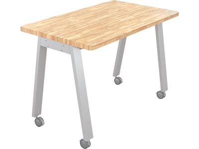 MooreCo Compass Makerspace 60" Table with Butcher Block, Beige/Platinum (91696-C-BUTCHER) | Quill.com