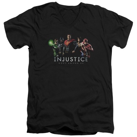 Trevco Injustice Gods Among Us-Injustice League Short Sleeve Adult V-Neck 30-1 Tee, Black - Small