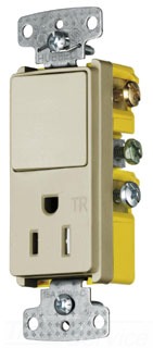 Hubbell Wiring Devices Combo Dec,15A 3-W&15A125V Rcpt Tr, Iv - RCD308ITR