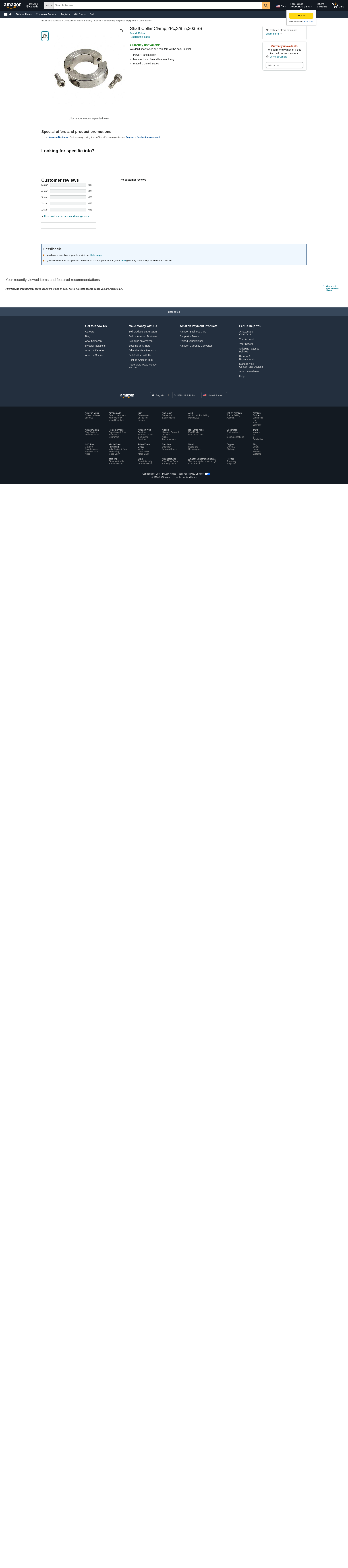 Shaft Collar,Clamp,2Pc,3/8 in,303 SS