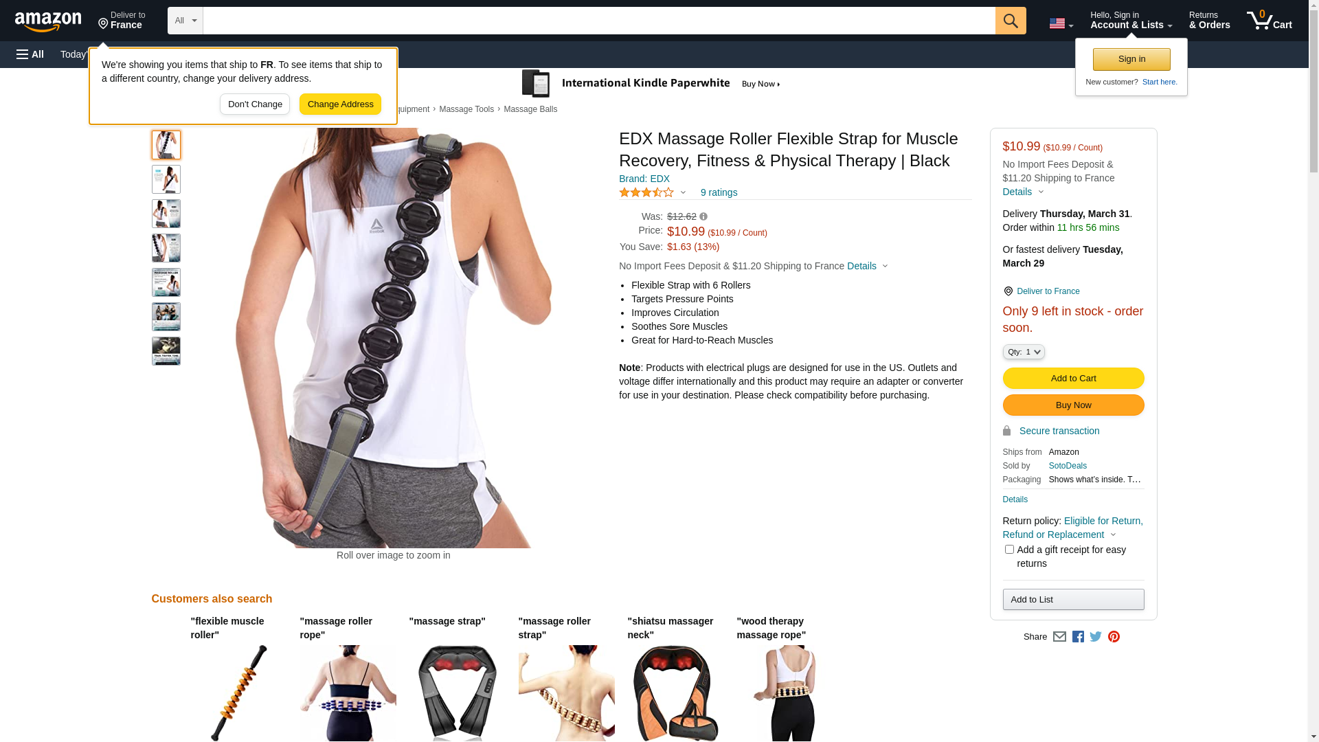 EDX Massage Roller Flexible Strap for Muscle Recovery, Fitness & Physical Therapy | Black