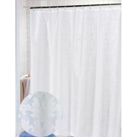 Carnation Home Fashions Damask Fabric Shower Curtain, White on White
