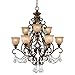 This Nine Light Up Chandelier is part of the Norwalk Collection and has a Bronze Umber Finish and Amber Etched Glass. It is Dry Rated.