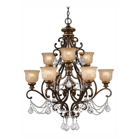 Crystorama-Nine Light Bronze Umber Amber Etched Glass Up Chandelier-7509-BU-CL-S