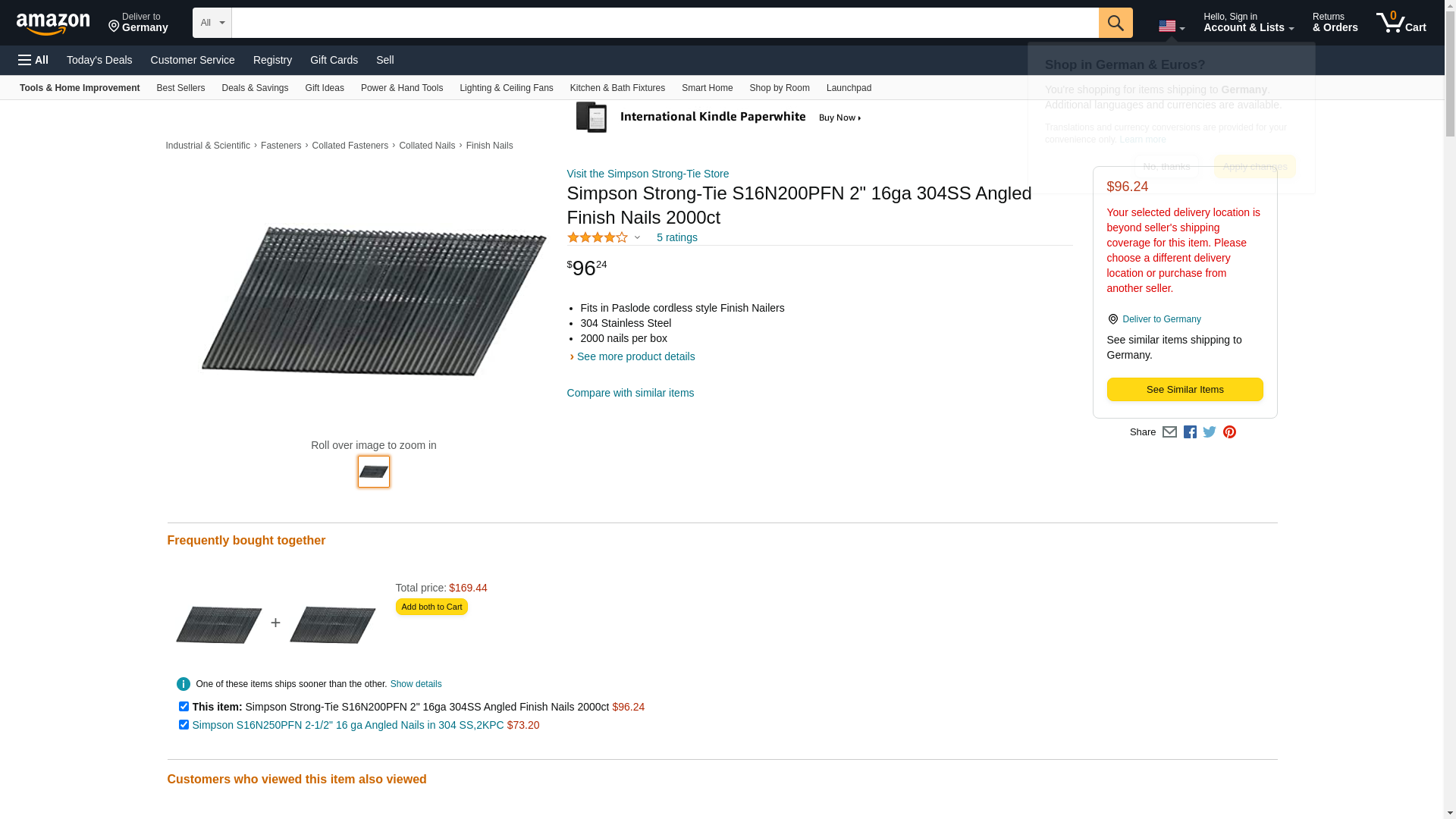 Simpson Strong Tie S16N200PFN 2-Inch 16 Gauge Angled Finish Nails Similar to Paslode and Dewalt Style In 304 Stainless Steel, 2000 Per Box