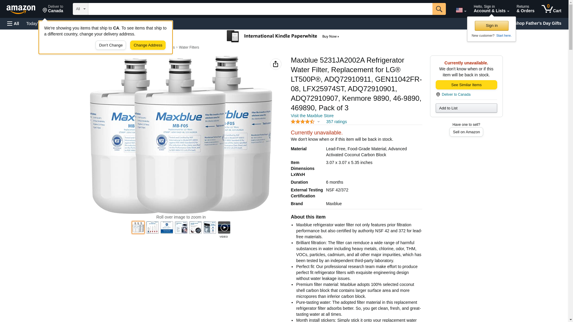 Maxblue NSF 53&42 Certified 5231JA2002A Refrigerator Water Filter, Replacement for LG LT500P, GEN11042FR-08, LFX25974ST, ADQ72910901, ADQ72910907, Kenmore 9890, 46-9890, 469890, Pack of 3: Maxedbuy.com