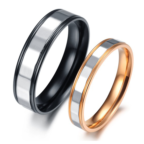 CET Domain SZ17-R077W-7 Titanium Steel Gold Band Couple Ring- Women-Size 7