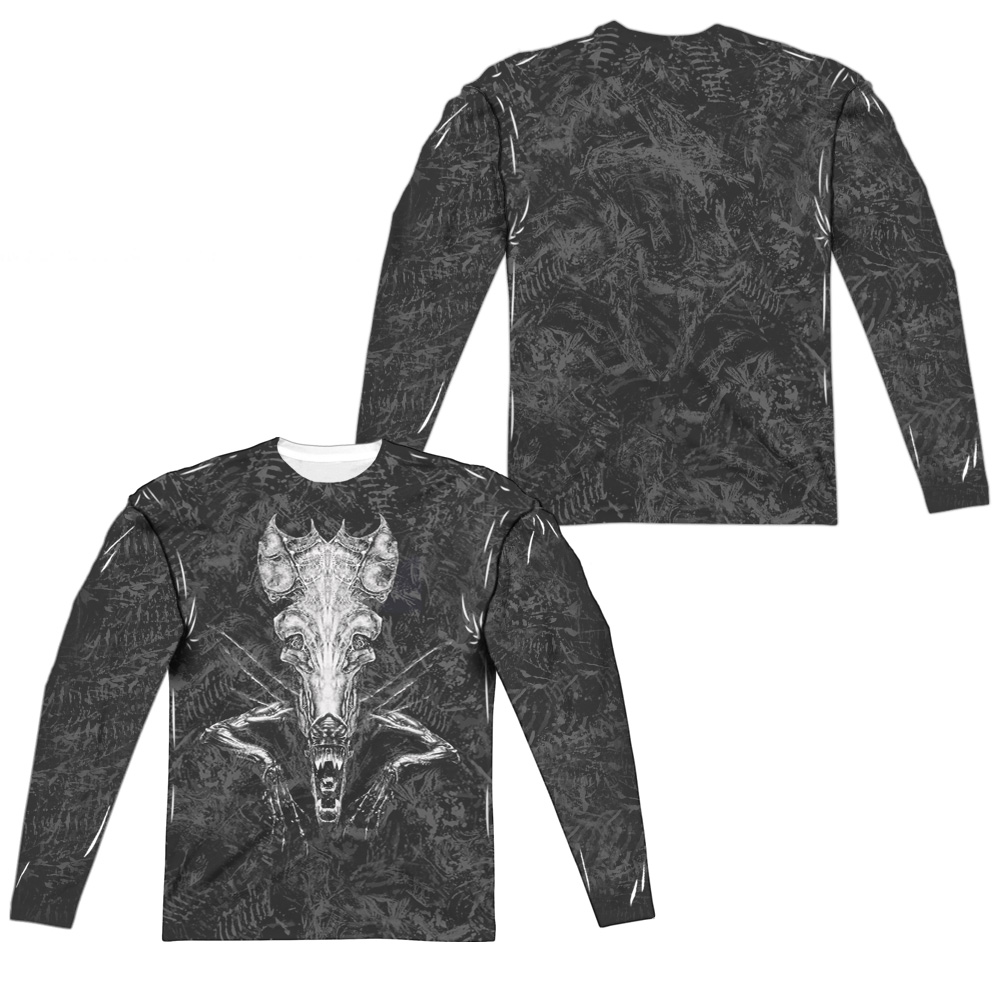 Trevco TCF433FB-ALPP-4 Alien & Hive Front & Back Print Adult Polyster Crew Neck Long Sleeve T-Shirt, White - Extra L
