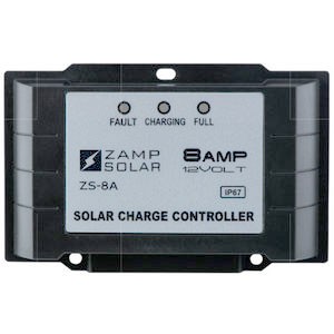 <p><strong>8-Amp 5-Stage PWM Charge Controller</strong><br /><strong>PART NUMBER: ZS-8AW</strong></p> <p>The ZS-8AW 8 Amp 5-Stage All-Weather (AW) Solar Charge Controller from Zamp Solar will protect your 12-Volt AGM, Conventional lead-acid (Wet), Gel and Calcium batteries, and handle up to 135 watts of power. The LED light indicators show charging status and battery condition. The device is designed to prevent battery overcharge, improve charge quality and prevent discharge in low or no light conditions.</p> <p>The ZS-8AW waterproof charge controller can be used on any solar charging system that kicks out under 6.4 amps per hour. It increases battery life up to 2 or 3 times.</p> <p><strong>8-Amp Charge Controller Specs:</strong></p> <p>Watts: 135</p> <p>Amps: 8</p> <p>Lithium Compatibility: No</p> <p>Remote Display Compatible: No</p> <p>Battery Temperature Sensor Compatible: No</p> <p>Mounting Options: Surface Only</p>