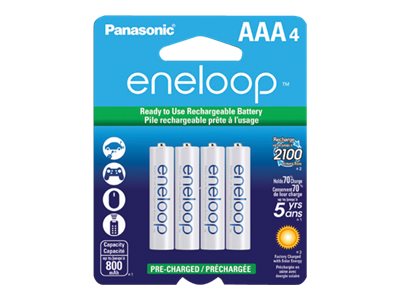 This 4-pack of Eneloop AAA Rechargeable Ni-MH Batteries from Panasonic have a capacity of 800mAh, and come factory-charged using solar energy, so they are ready-to-use right out of the box. They hold 70% of their charge for up to 5 years, and can be recharged up to 2,100 times. Rechargeable Up to 2,100x Pre-Charged, Ready to Use Holds 70% of Charge for 5 Years No Memory Effect Can Be Charged When Partially Drained Functions Down to -4°F