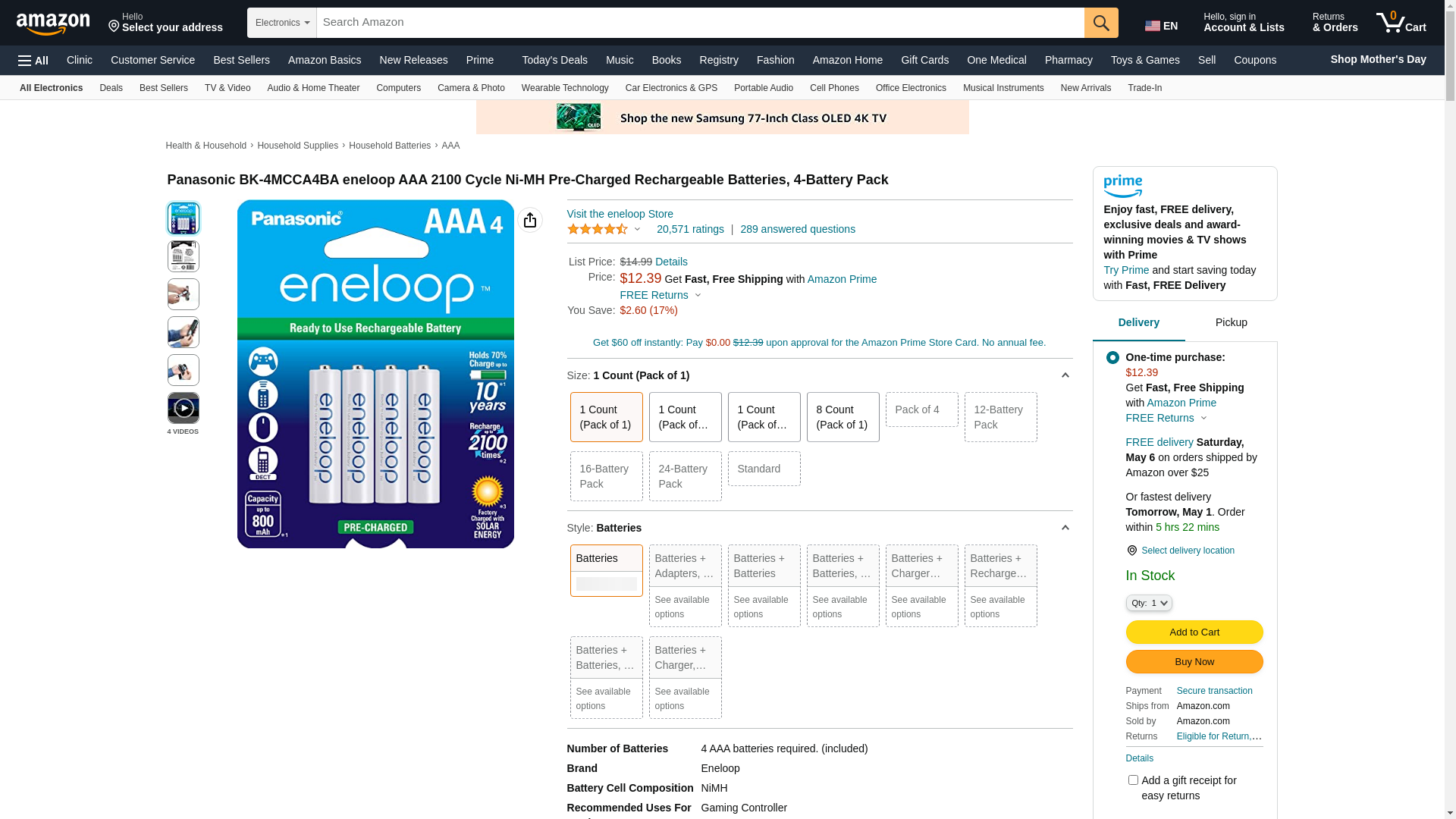 If you are a gadget lover our Electronics catalog is your dream destination Choose from hundreds of gadgets and accessories to suit different uses and add some entertainment facility and convenience to your lifeFeatures. Eneloop AAA batteries. Pack of 4Specifications. ApplicationUsage Multipurpose. Battery Size AAA