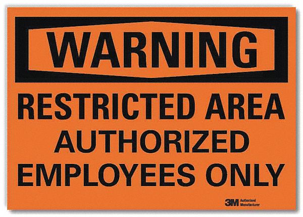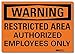 Admittance Sign, Vertical Rectangle, Number of Printed Sides 1, English, Sign Format Traditional OSHA, Sign Legend Restricted Area Authorized Employees Only, Sign Legend Background Color Orange, Sign Legend Style Text