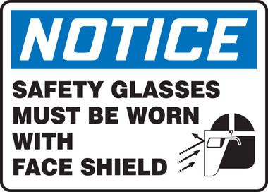 Safety Glasses Must Be Worn With Face Shield (W/GrMaterial: ADHESIVE VINYLSize: 10X14