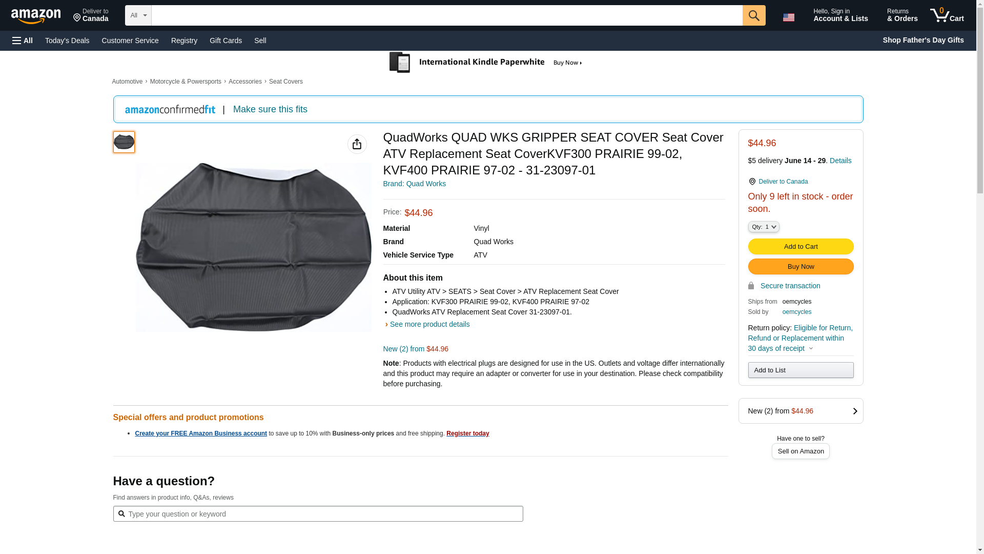 - QuadWorks ATV Replacement Seat Cover 31-23097-01.