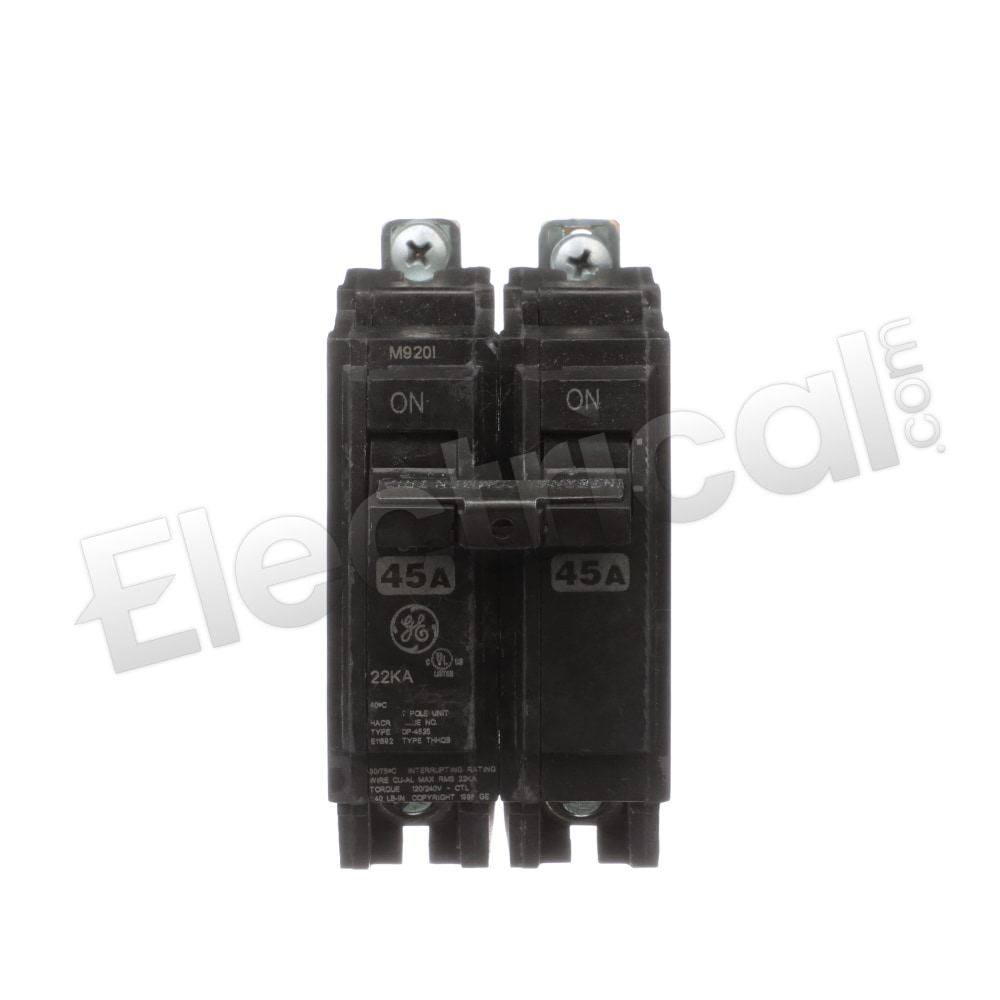 THHQB2145 MOLDED CASE, THERMAL MAGNETIC, INTERNAL COMMON TRIP TYPE; 2 INCH W X 2 3/8 INCH D X 3 9/32 INCH H SIZE; AQ SERIES PANELBOARD USED ON; 8 TO 3 AWG (COPPER/ALUMINUM) WIRE SIZE; UL APPROVAL; 120/240 VAC VOLTAGE RATING; 1 INCH BOLT ON MOUNTING; 22 KILOAMPERE INTERRUPTING RATING; 45 AMPERE CURRENT RATING; 2 POLE(S); LUG LOAD TERMINAL TERMINAL TYPE; THHQB MODEL