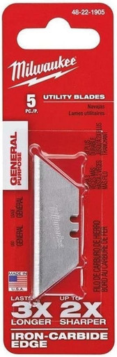 The Milwaukee 48-22-1905 is a 5-pack of General Purpose Utility Blades. Milwaukee General Purpose Utility Blades are designed to maximize cutting performance and durability in most common jobsite materials. Milwaukee utility blades are engineered to fit Milwaukee and most standard utility knives.