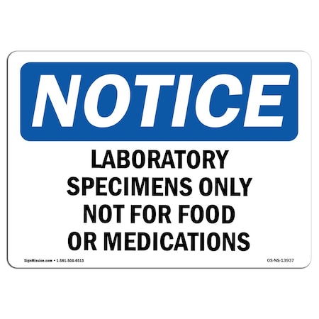 OSHA Notice Sign, Laboratory Specimens Only Not For Food Or, 14in X 10in Decal