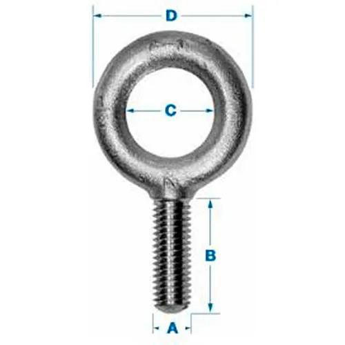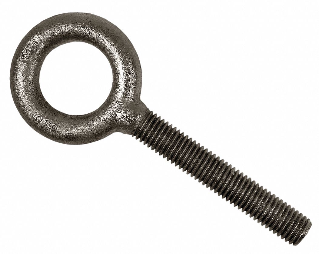 | Feature | Price For: Each System of Measurement: Inch Finish: Galvanized Min. Tensile Strength: 65, 000 psi Material: Steel Item: Eye Bolt Eyebolt Type: Lift without Shoulder Eye Outside Dia.: 2-1/2" Working Load Limit: 4, 000 lb. Eye Inside Dia.: 1-3/8" Shank Dia.: 5/8" Thread Length: 1-3/4" Shank Length: 1-3/4" Overall Length: 4.56" Thread Size: 5/8"-11 |