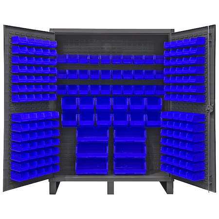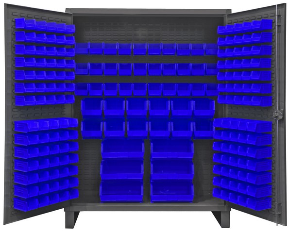 Durham HDC60-198-5295 Lockable Cabinet with 198 Blue Hook-On Bins, 60" Wide, 12 Gauge