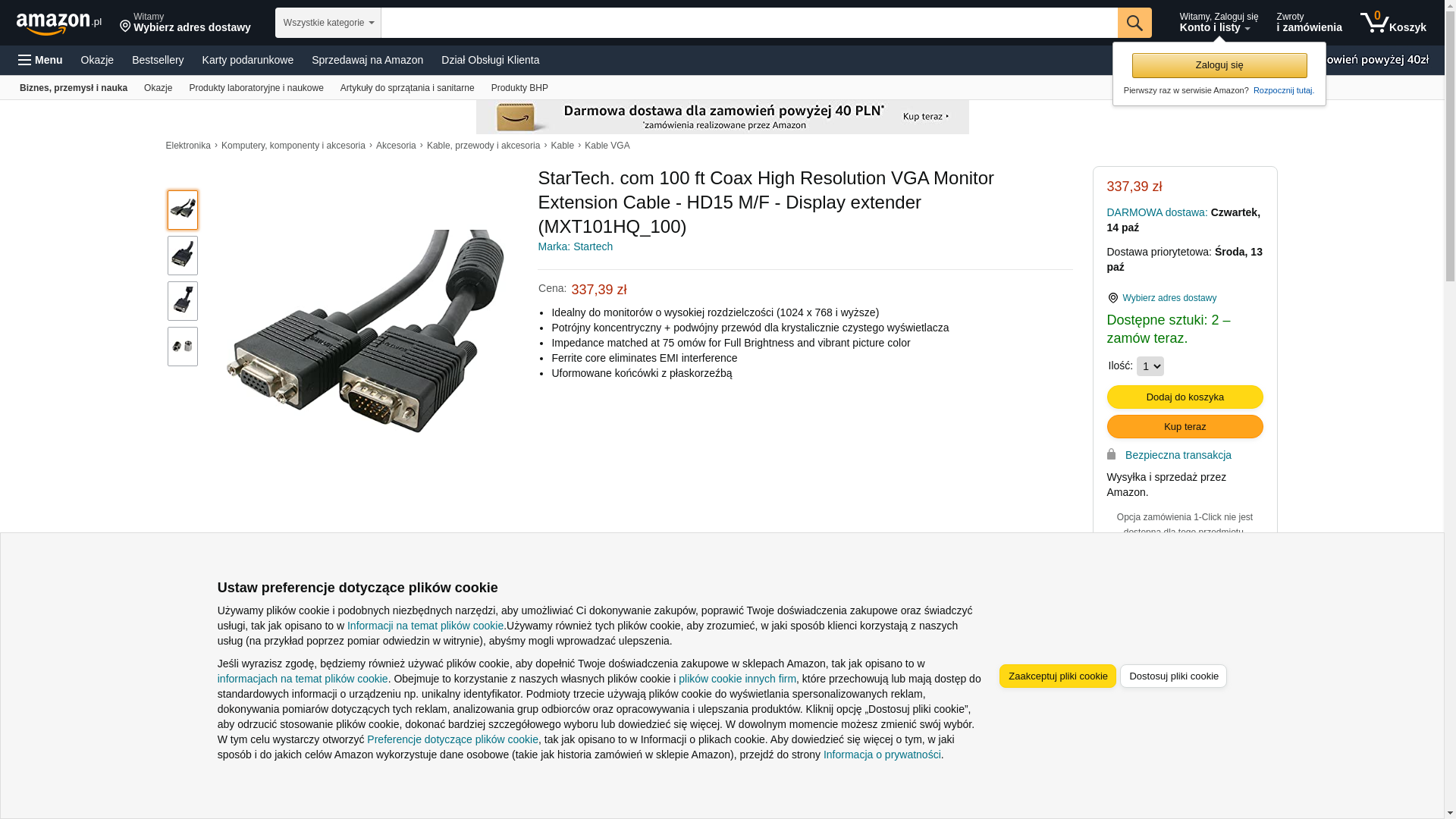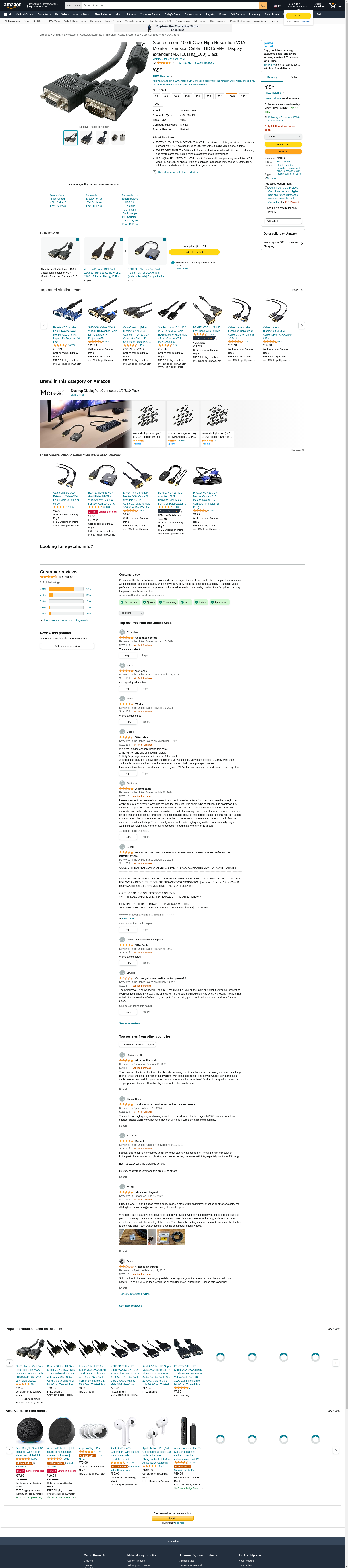Buy StarTech.com 100 ft Coax High Resolution VGA Monitor Extension Cable - HD15 M/F - Display extender (MXT101HQ_100),Black: VGA Cables - Amazon.com ? FREE DELIVERY possible on eligible purchases