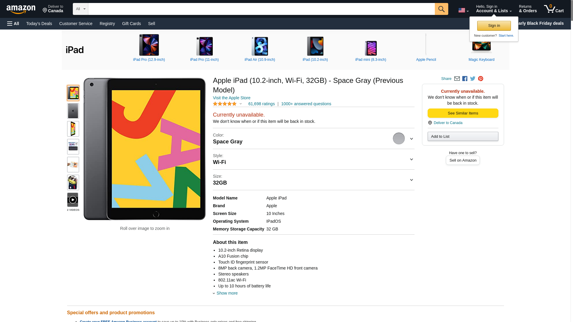 Apple iPad (10.2-inch, Wi-Fi, 32GB) - Space Gray (Previous Model)