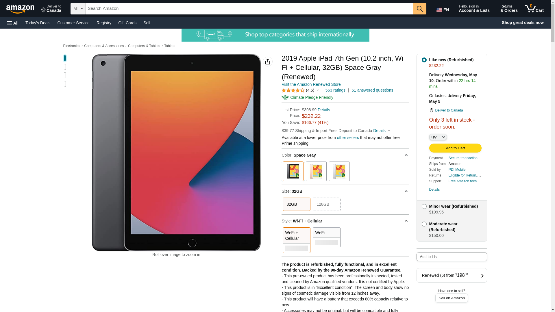 2019 Apple iPad 7th Gen (10.2 inch, Wi-Fi + Cellular, 32GB) Space Gray (Renewed)