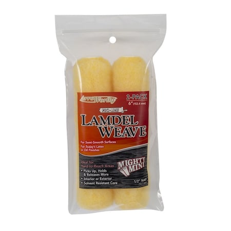 Highlights:Nap Material : LamdelColor : YellowWidth : 6 inchNap Size : 1/2 inchCore Diameter : 5/8 inchRoller Type : MiniLint FreeShed ResistantSolvent Resistant CoreExcellent paint pick up & releaseSolvent and water resistant coreIdeal for hard-to-reach areasUse with Paint Type : Acrylic & Oil PaintsRecommended Surface : Semi Smooth SurfacesNumber in Package : 2Bagged