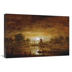 Global Gallery Budget GCS-283282-30-142 Aert Van Der Neer Title Unknown (Boats at Sunset with Windmill) Gallery Wrap Giclee on Canvas Wall Art Print