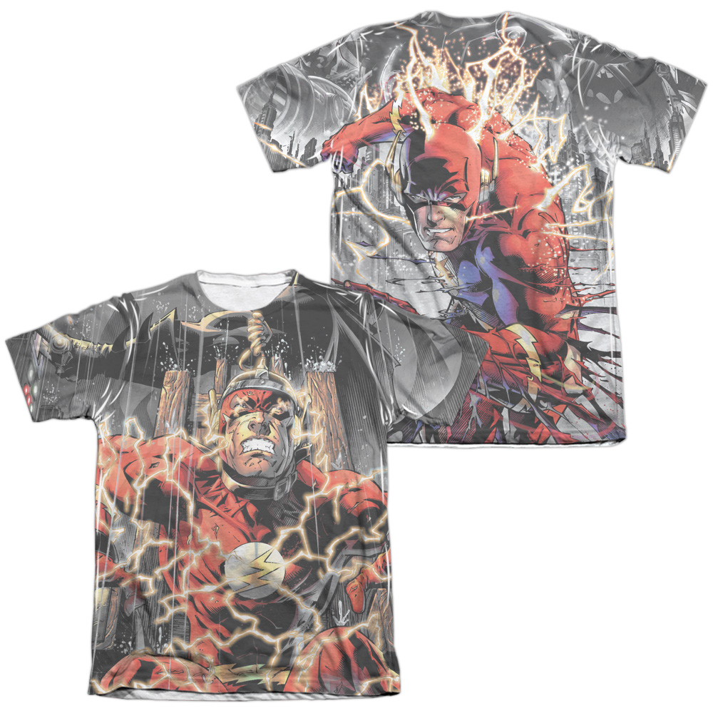Trevco JLA581FB-ATPC-3 Jla & Shock Therapy Front & Back Print Adult Regular Fit Short Sleeve T-Shirt, White - Large