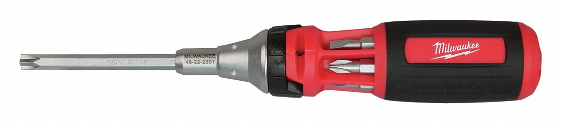 MILWAUKEE ELECTRIC TOOL 48-22-2301 Ratcheting Bit Driver | 7 Chrome Plated Bits Included